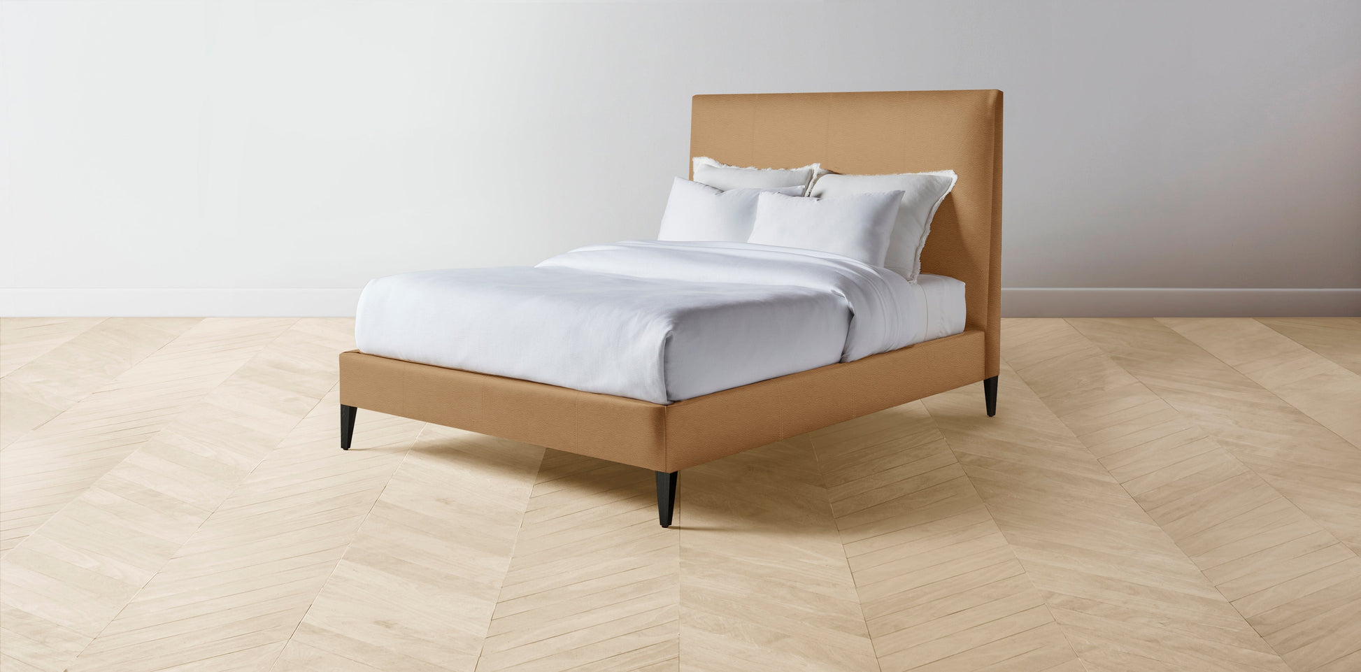 The Essex - Pebbled Leather Latte Bed - 60" Headboard - Upholstered on reverse