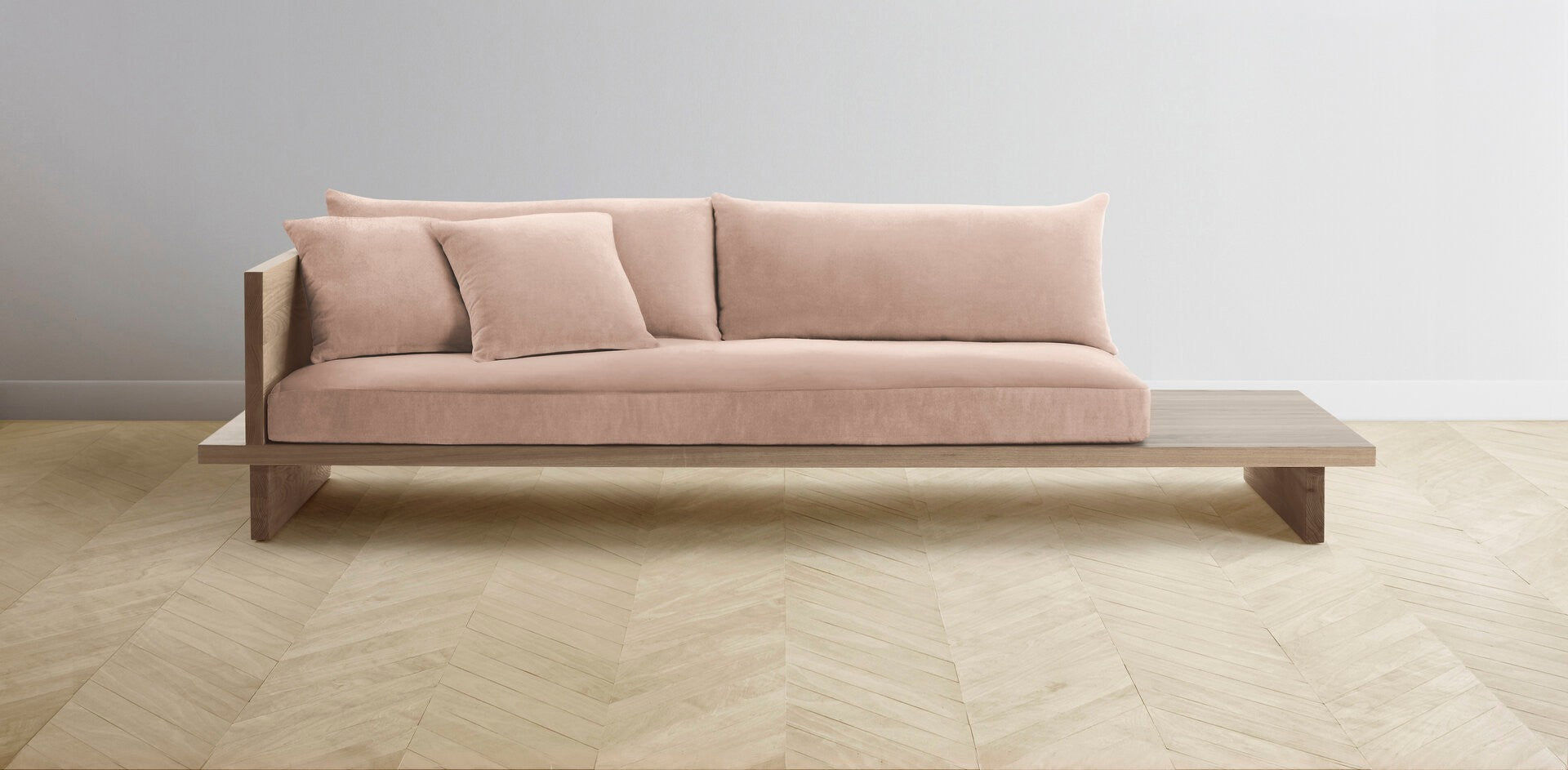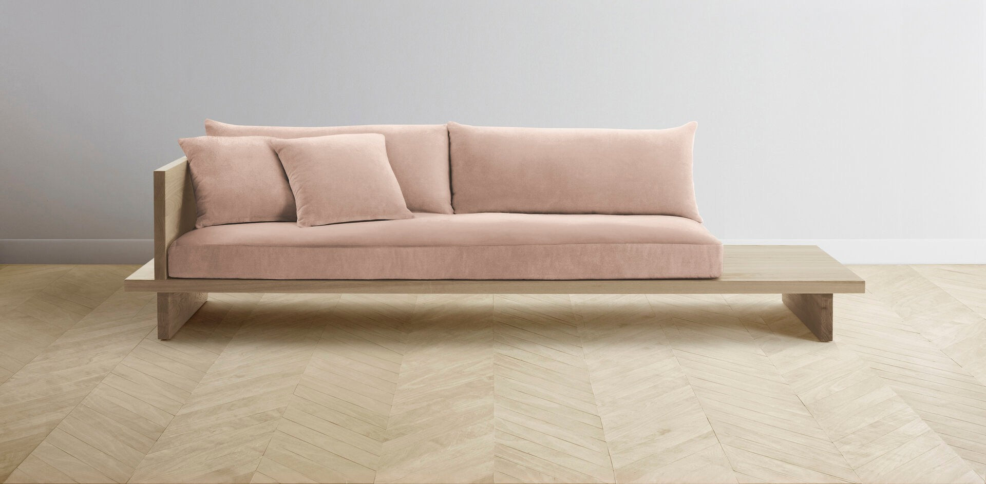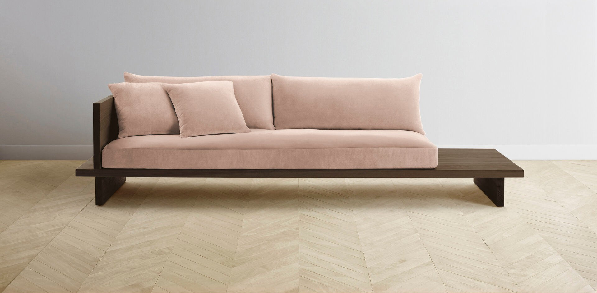 The Muir Arm on Left - Performance Velvet Dusty Rose Sofa