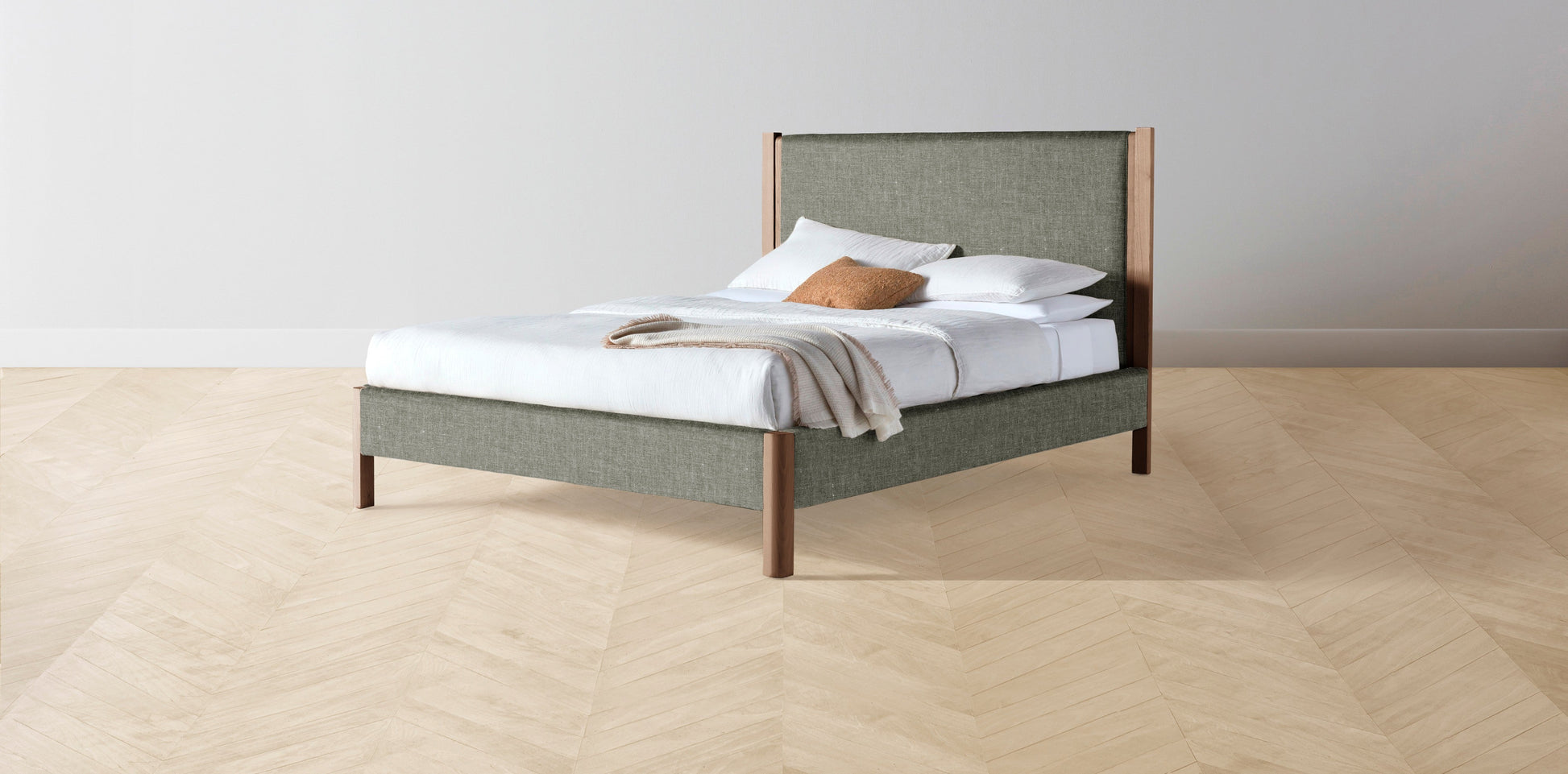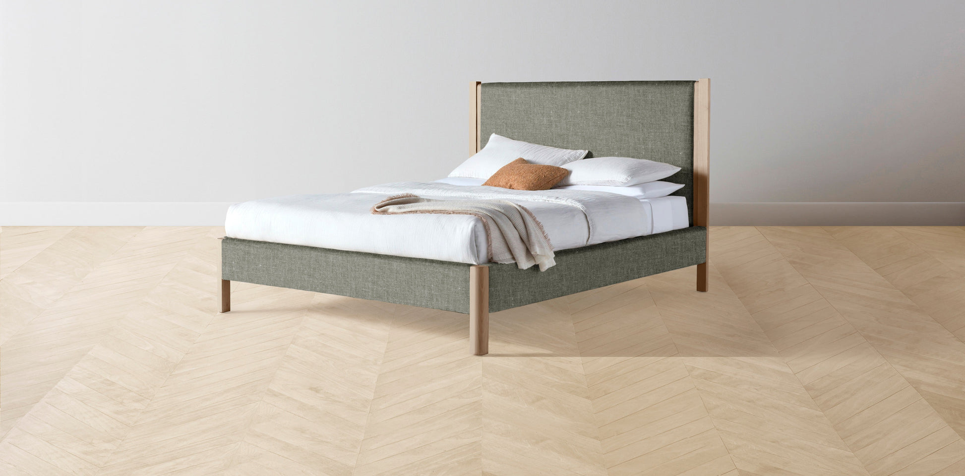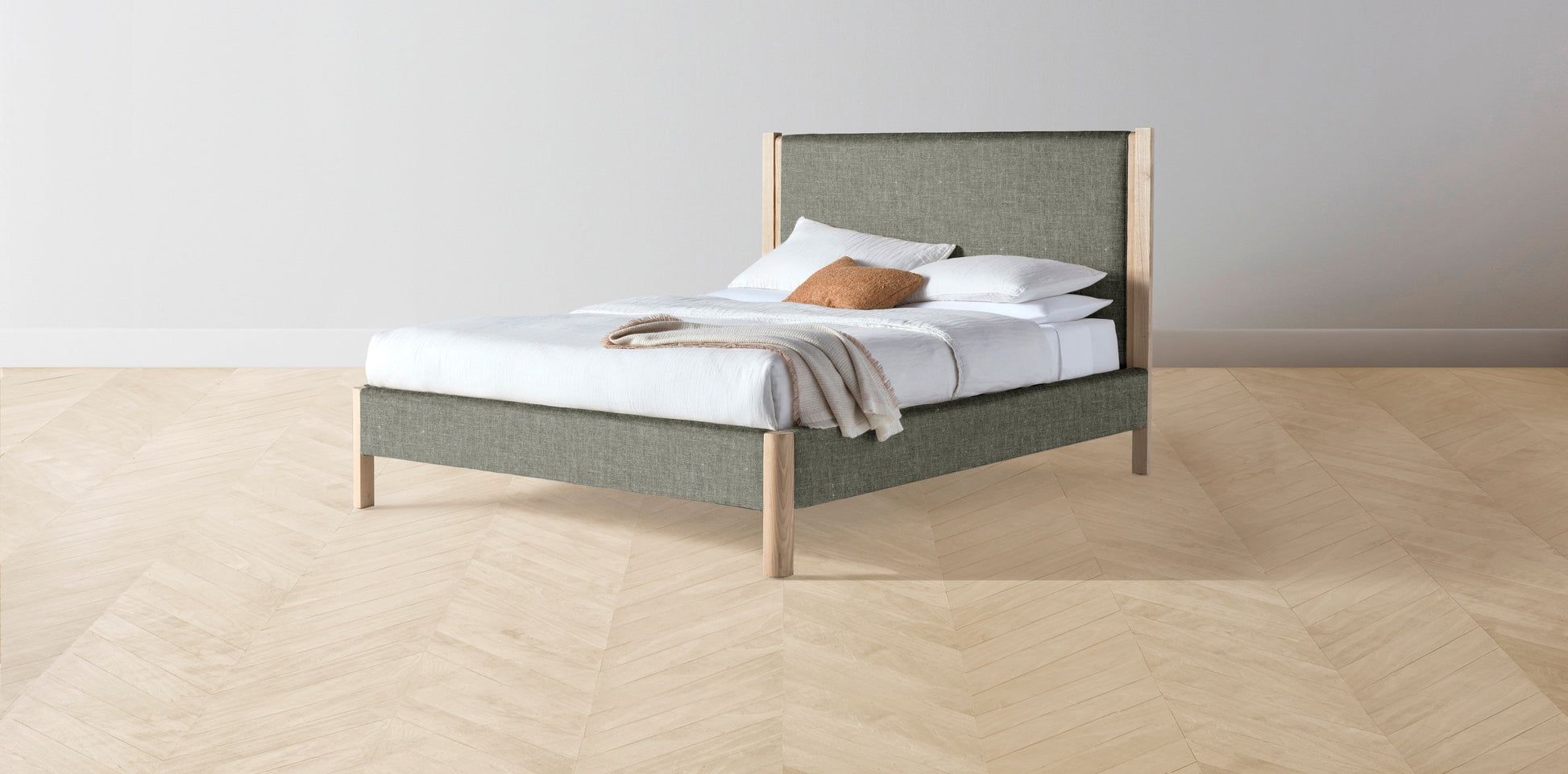 The Thompson - Belgian Linen Thyme Bed - 48" Headboard - Muslin on reverse