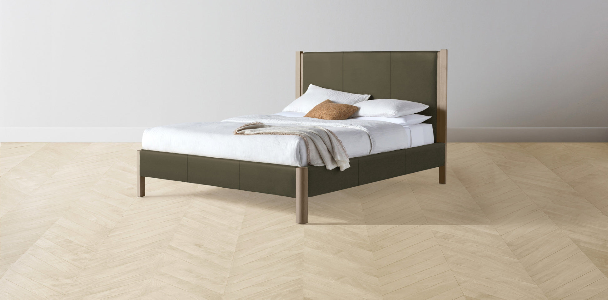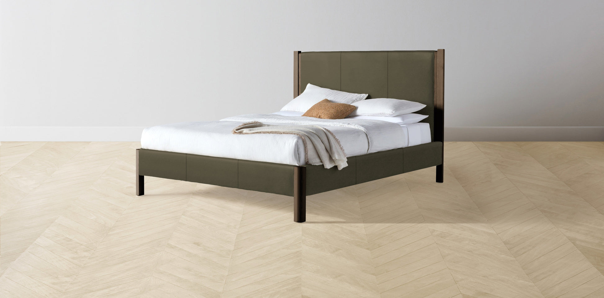 The Thompson - Pebbled Leather Truffle Bed - 48" Headboard - Muslin on reverse